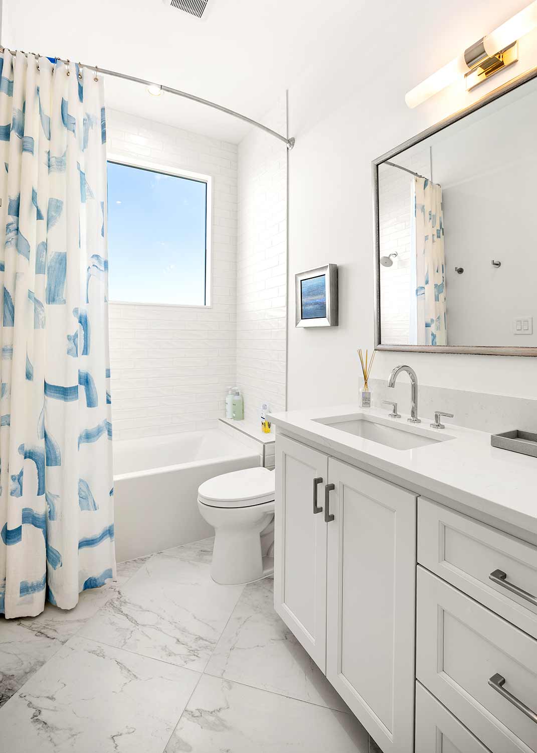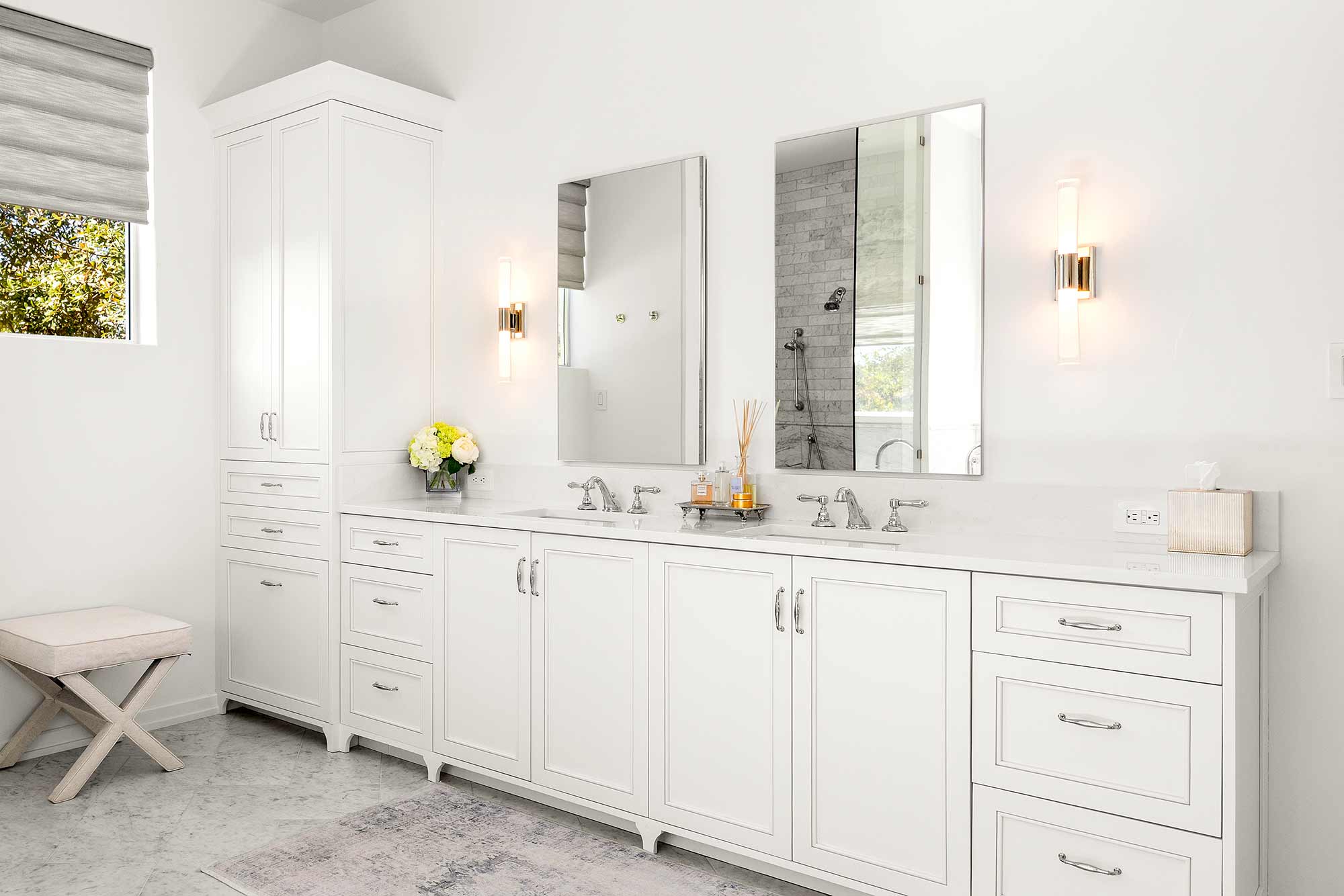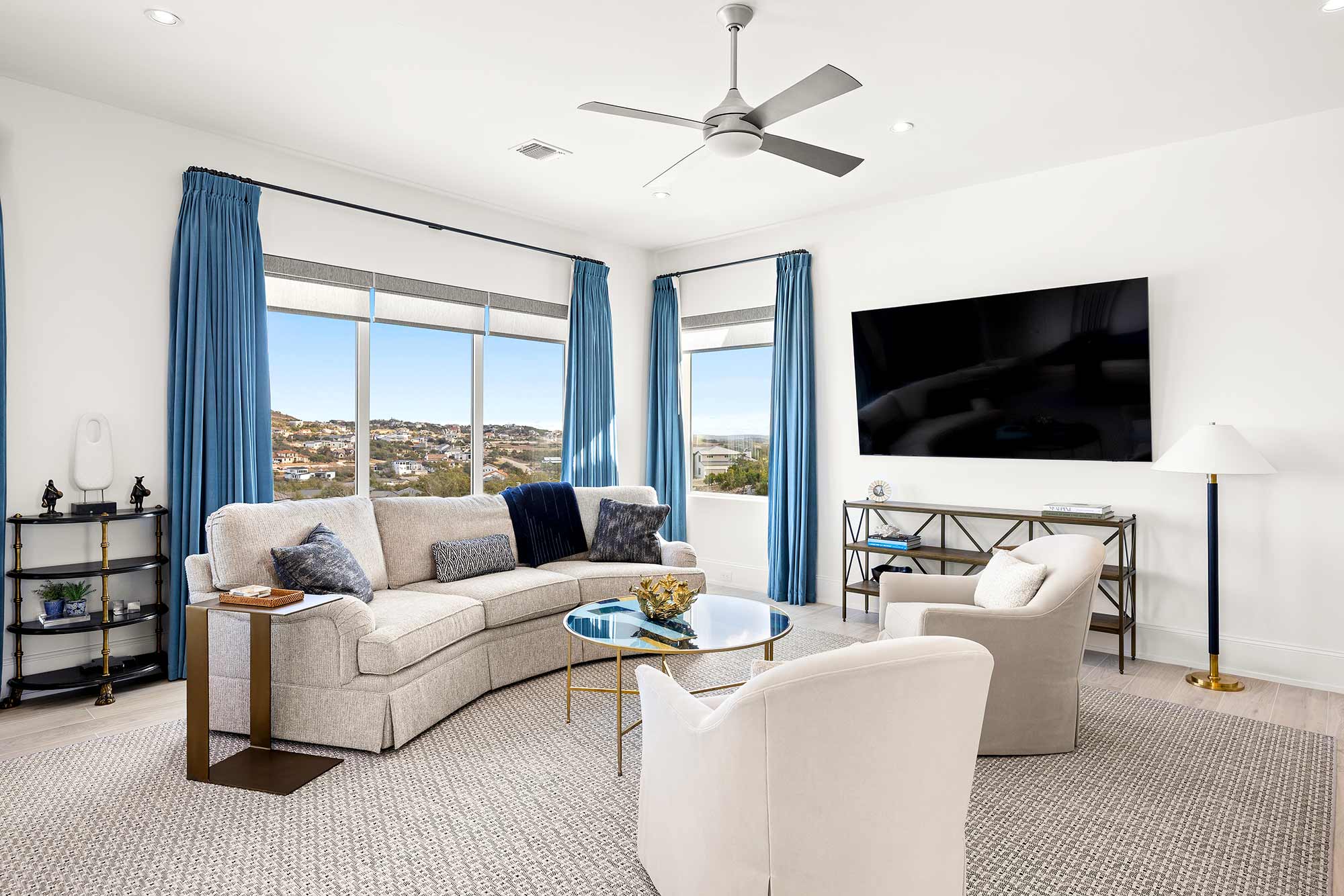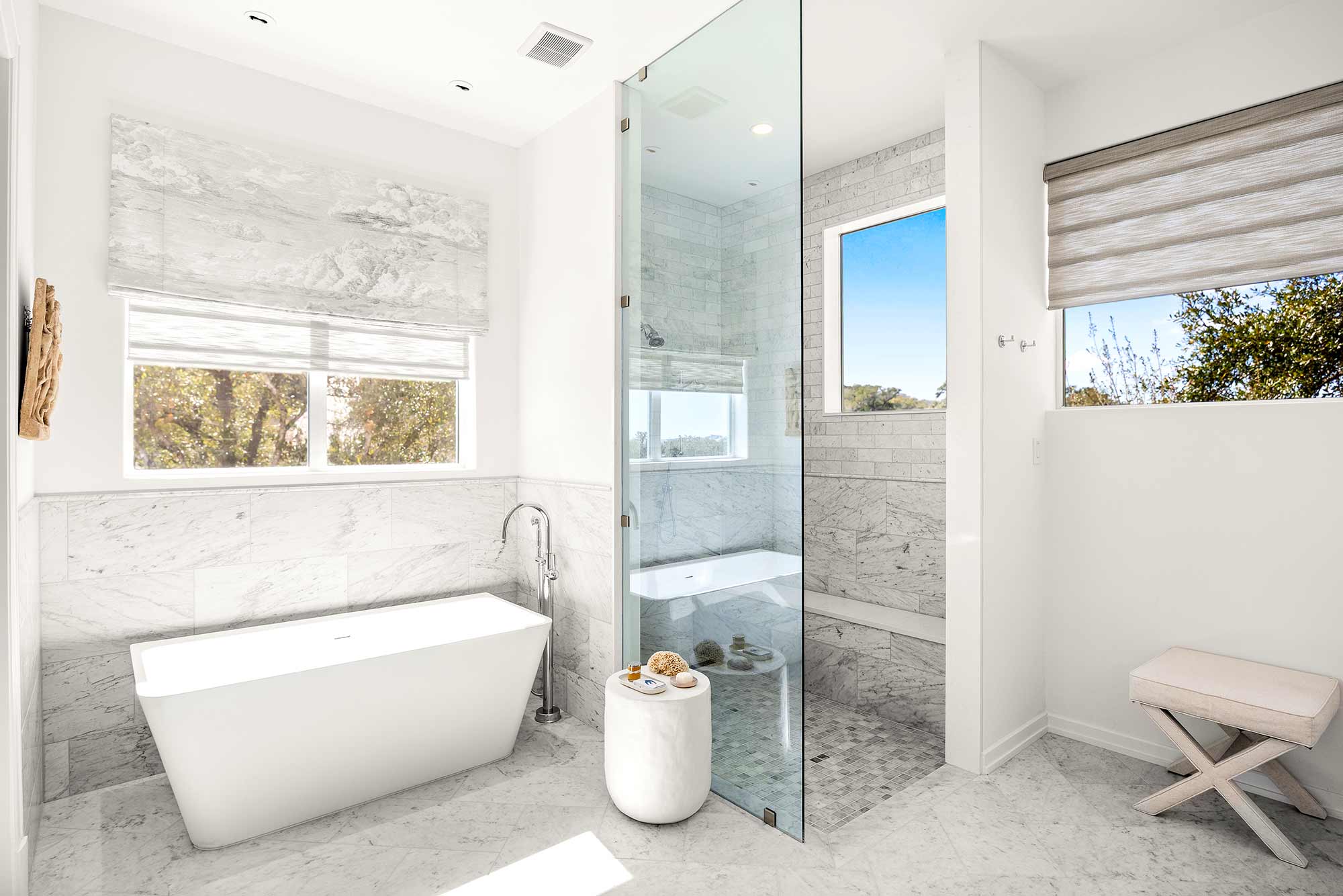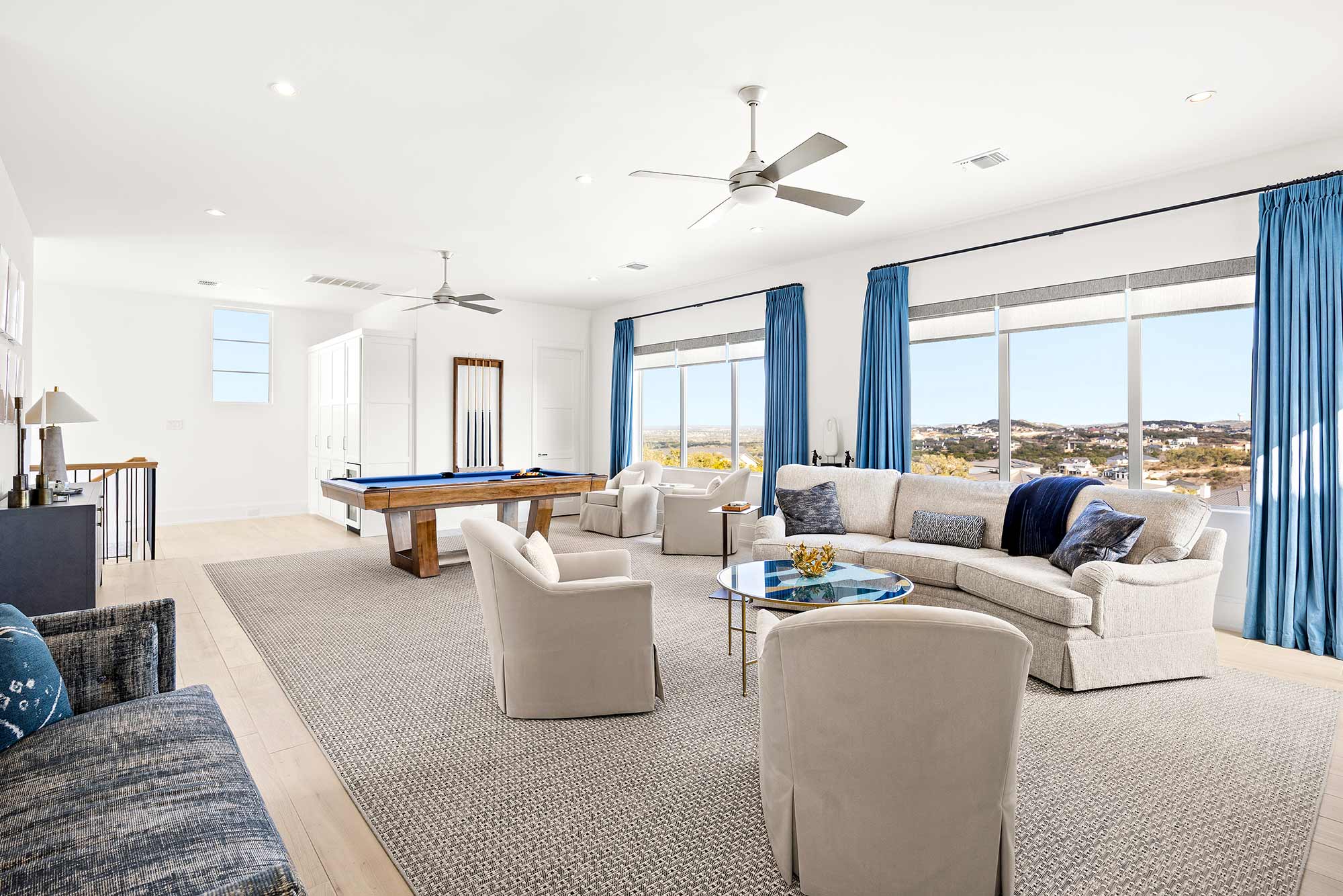 - Bright open spaces enhanced by light wall treatments, light wood floors and oversized windows
